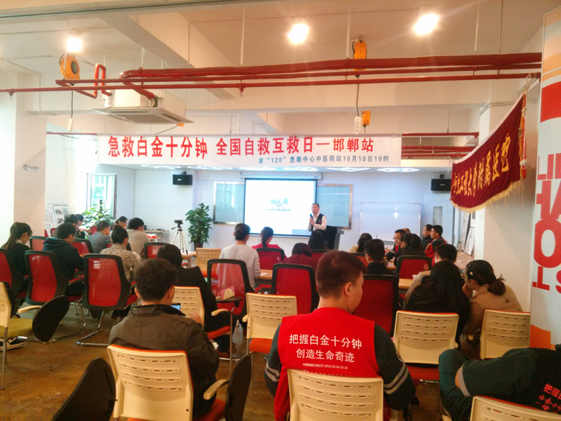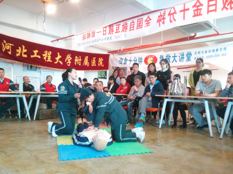 2015年10月10日,由邯鄲市中醫(yī)院、市120急救中心、河北工大附院、王永春健康小屋在邯鄲高科創(chuàng)客空間二樓開展“急救黃金十分鐘,全國自救互救日”科普活動,活動于10時10分正式開始。