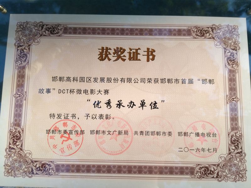 邯鄲高科榮獲“邯鄲市首屆‘邯鄲故事’DCT杯微電影大賽優(yōu)秀承辦單位”獎(jiǎng)